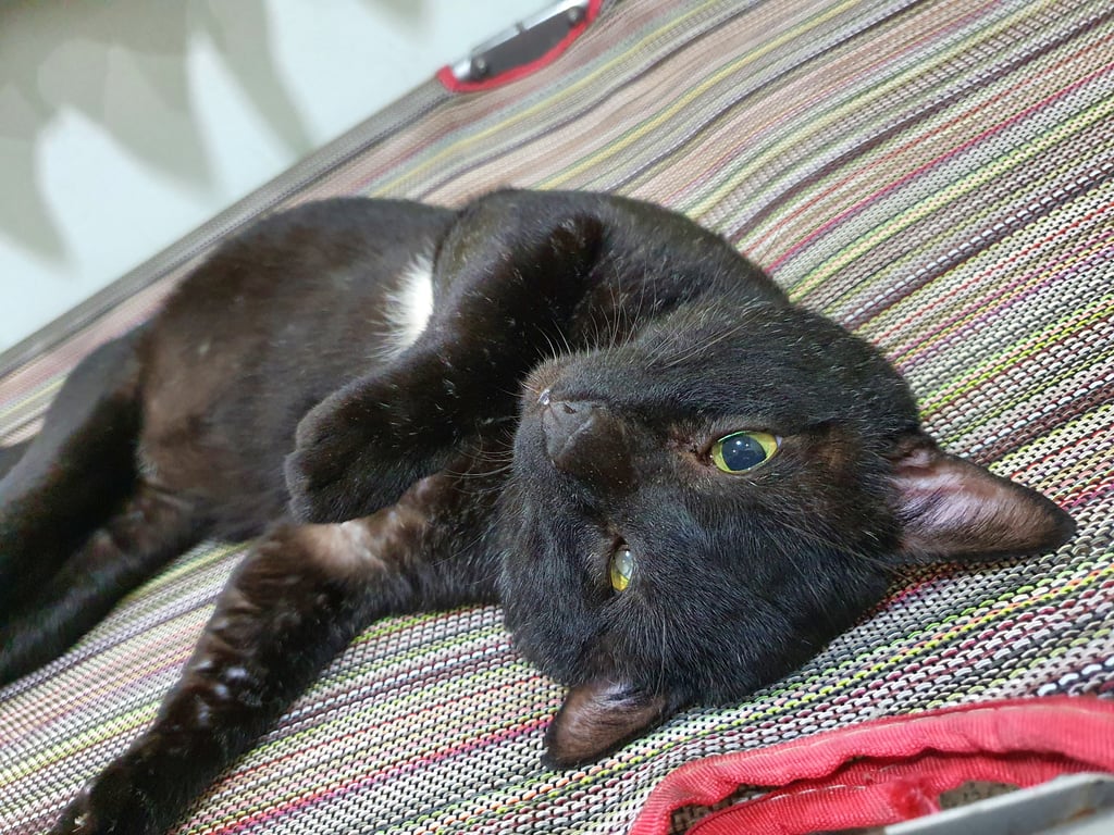 รอยตำหนิ: ตาบอด 1 ข้าง / แก้มใหญ่ / ใต้ท้องมีแถบสีขาวเหมือนหมี / กลัวคน