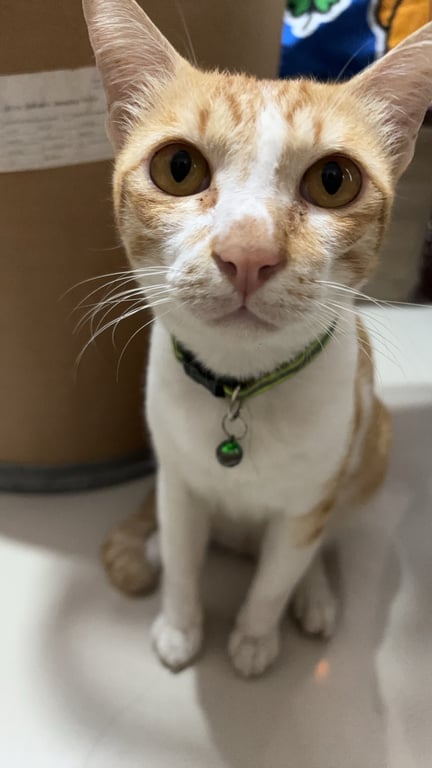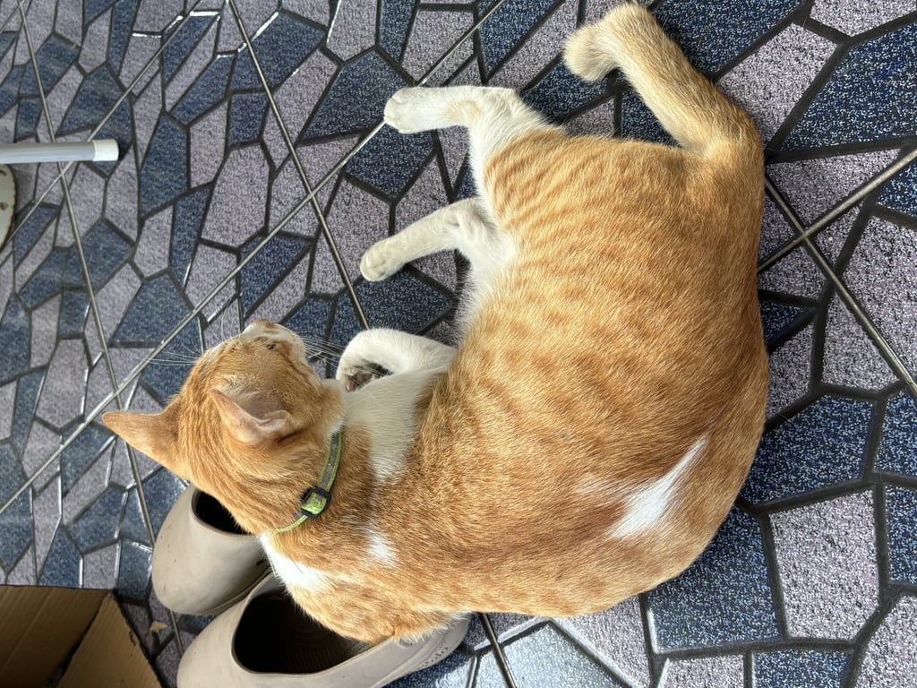 รอยตำหนิ: ปลายหางงอเหมือนด้ามจับร่มตัวอ้วนๆ กลางหลังมีขนสีขาว หางงอ ปลอกคอสีเขียวสะท้อนแสง