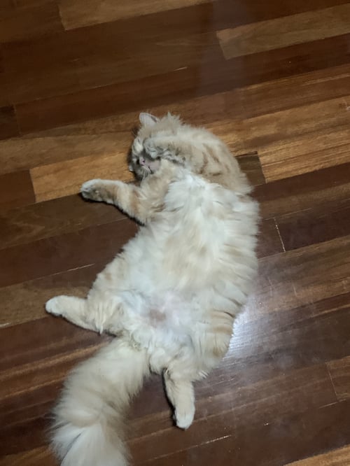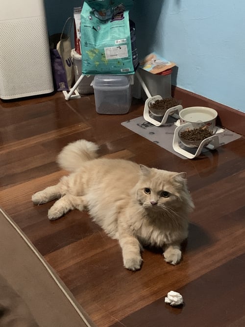 รอยตำหนิ: หางสวย ขนเยอะ ตาสีเหลืองดำ ขนที่หน้าท้องโดนโกนอชิประวัติเคยป่วยเป็น fip การทานอาหารที่บ้านให้ทานแค่อาหารเม็ด และขนมแมวเท่านั้น เป็นแมวที่สุขภาพลำไส้ไม่ค่อยดิ หากกินอะไรที่ผิดแปลกไปจะท้องเสีย ถ่ายเหลว นิสัยเป็นแมวขี้อ้อน ขี้เล่น สดใสร่าเริง ชอบไปเที่ยวนอกบ้าน แต่กลัวคนแปลกหน้า ถ้าไม่สนิทจะไม่ให้จับ กลัวเสียงดัง เสียงเครื่องยนต์ต่างๆ