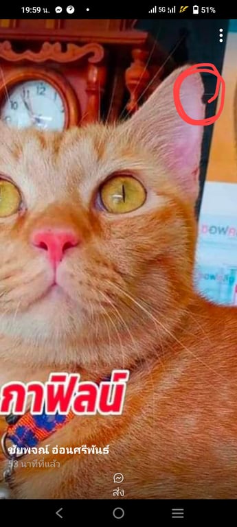 ใบหูซ้ายแหว่งนิดหน่อย