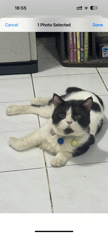 รอยตำหนิ: มีเคราดำขี้กลัว ไม่กล้าเจอคน ซ่อนเก่ง ไม่ดุ ปลอกคอสีฟ้า/เขียว มีกระดิ่ง