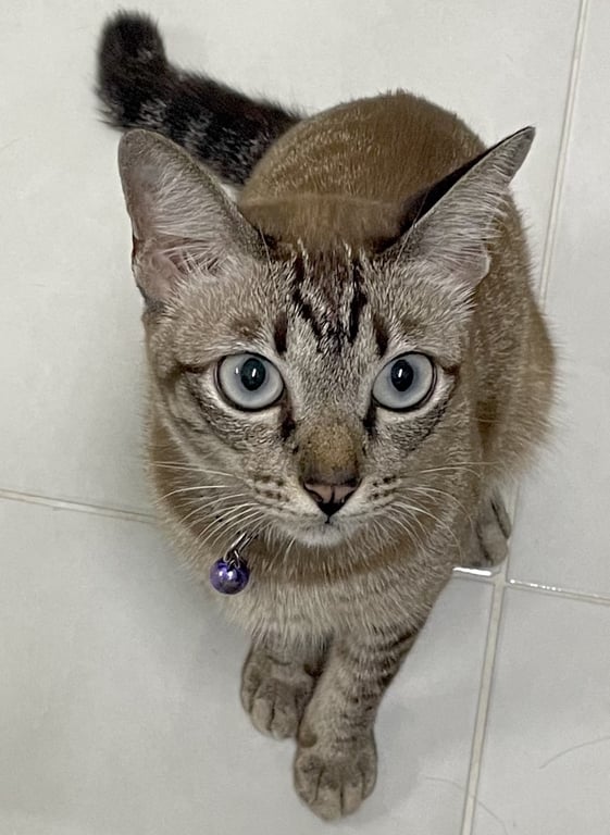 รอยตำหนิ: หางกวัก หนัก 2.9-3 kg.เป็นแมวที่กินยาก ชอบกินกุ้งต้มกับอาหารเม็ดและขนมแมวเลีย ไม่กินอาหารเปียก ไม่ชอบยุ่งกับคนและแมวตัวอื่น โลกส่วนตัวสูง