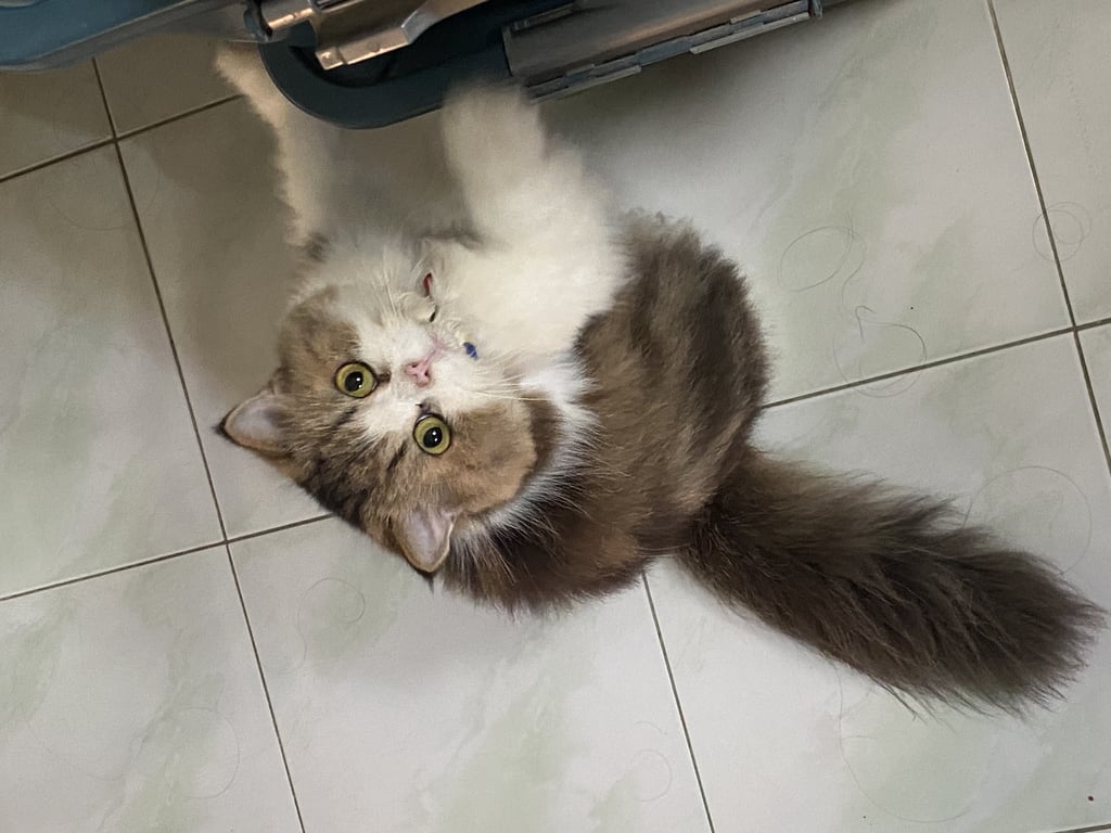 รอยตำหนิ: ไม่มีตำหนิ ลายที่ตัวเป็นก้นหอยวนๆแก้มกลมๆ อ้วนๆ ขนฟู หน้าตามึน ๆ นิสัยกลัวคนแปลกหน้า ขี้ตกใจ