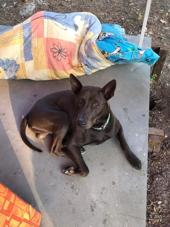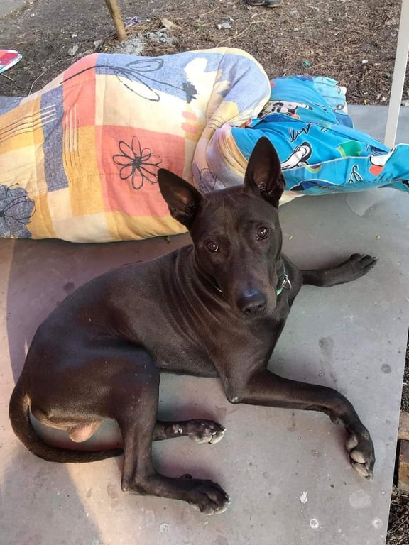รอยตำหนิ: หมาไทยหลังอาน ใส่ปลอกคอสีเขียวหมาไทยหลังอานสีดำ ใส่ปลอกคอสีเขียว