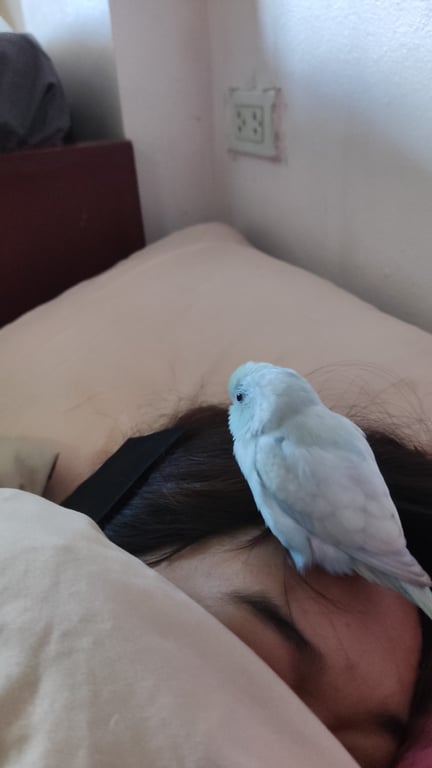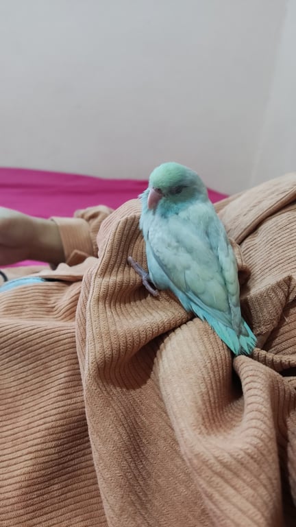 รอยตำหนิ: หน้าเขียวๆ ตัวสีฟ้าพาสเทลอ่อนๆนกติดคน ไม่มีห่วงขา