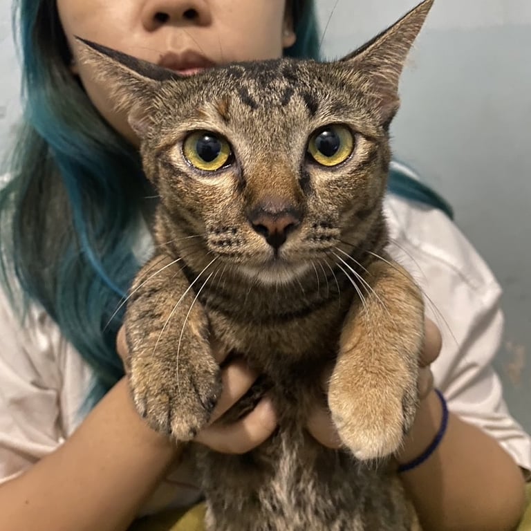 รอยตำหนิ: ปลอกคอสีชมพู ขาหลัง ส้มข้าง ดำข้าง หนวดตกๆ