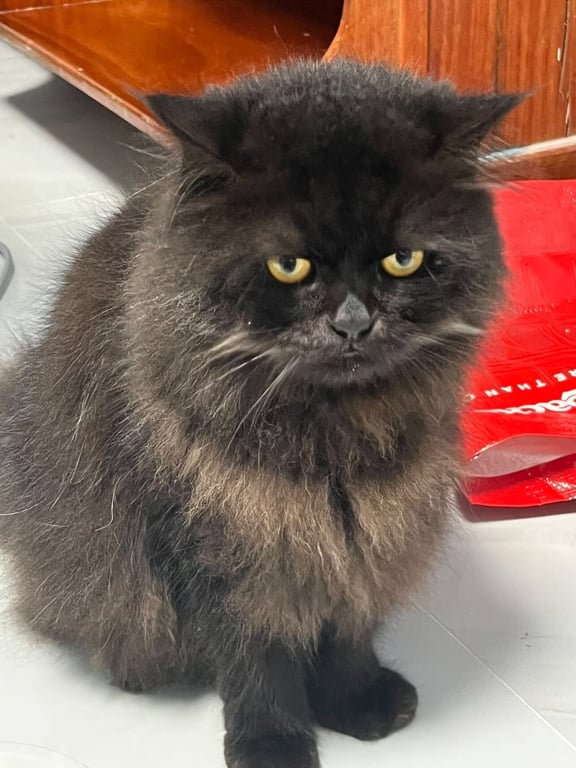 เอื้ออาทร เขาแตงอ่อน - ห่วยยายพรหม ซอย 10 วังหิน อำเภอศรีราชา ชลบุรี 20110 ลักษณะ : ขนยาวสีดำ ตาสีเหลือง ขี้กลัว เบอร์ติดต่อ : 0814254752