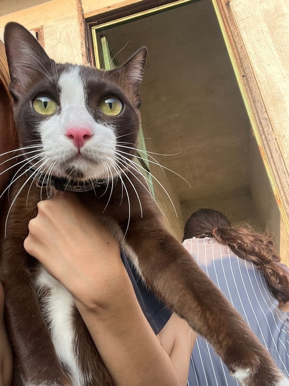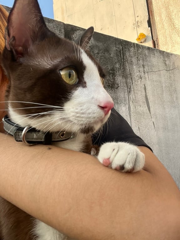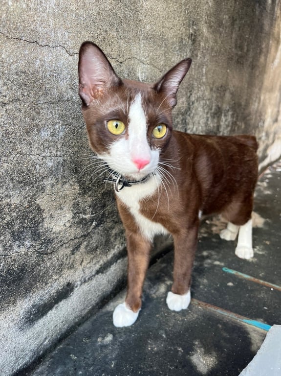 รอยตำหนิ: มีจุดสีดำๆที่คางคล้ายๆไฝ หางกุดหนีออกจากบ้าน