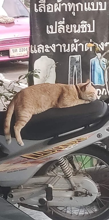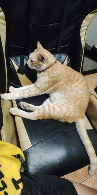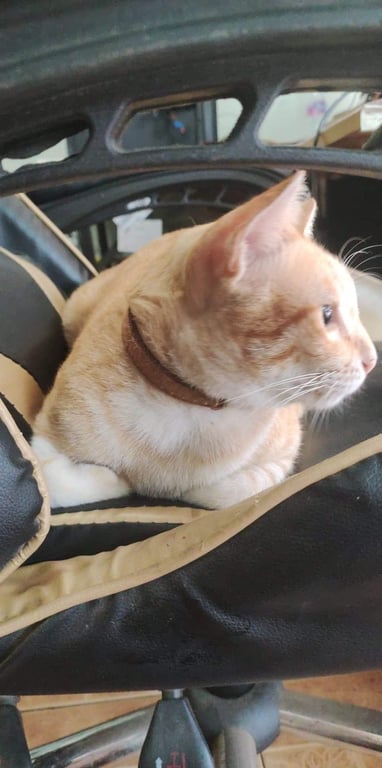 รอยตำหนิ: น้ำหนักพอประมาณถูกหมารุมกัด แล้ววิ่งหายไปเมื่อ 2 วันก่อน ปกติอยู่แถวบริเวนร้านและรั้วข้างบ้าน เป็นแมวพุงย้อยๆหน่อย