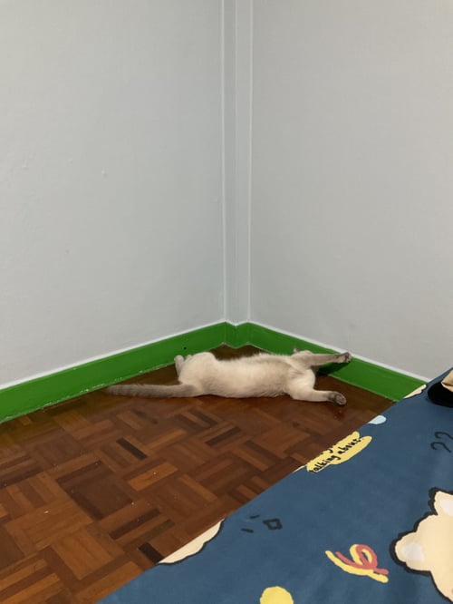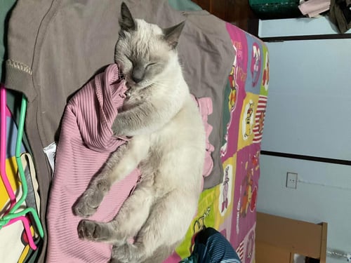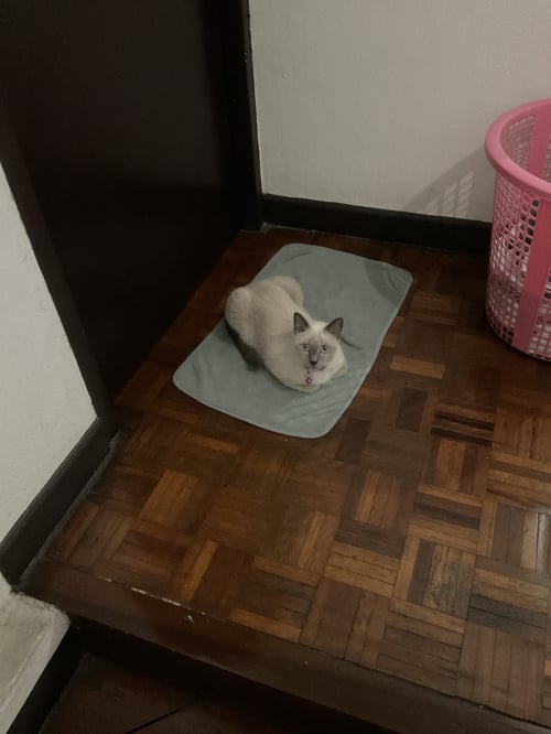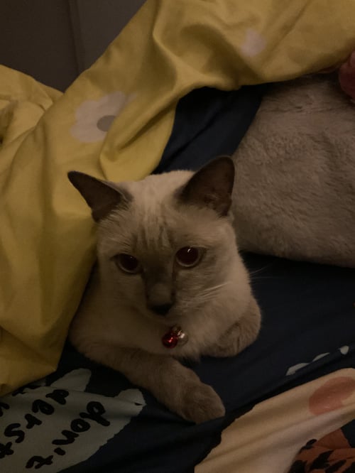 รอยตำหนิ: ตาสีฟ้า จมูกเทาๆปัจจุบันจะใส่ปลอกคอ มีกระดิ่ง 2 ลูก