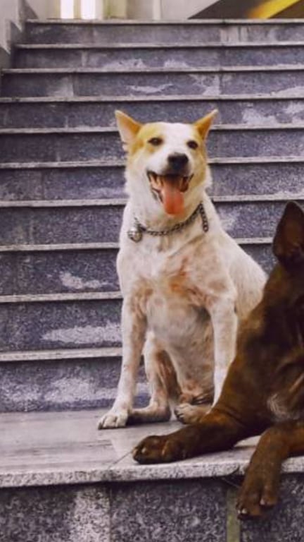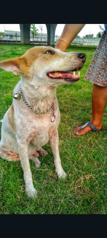 รอยตำหนิ: มีขนสีน้ำตาลด่างๆตรงหูสองข้างและกลางลำตัวเดินเซๆตาไม่ดีใส่ปลอกคอสีชมพู