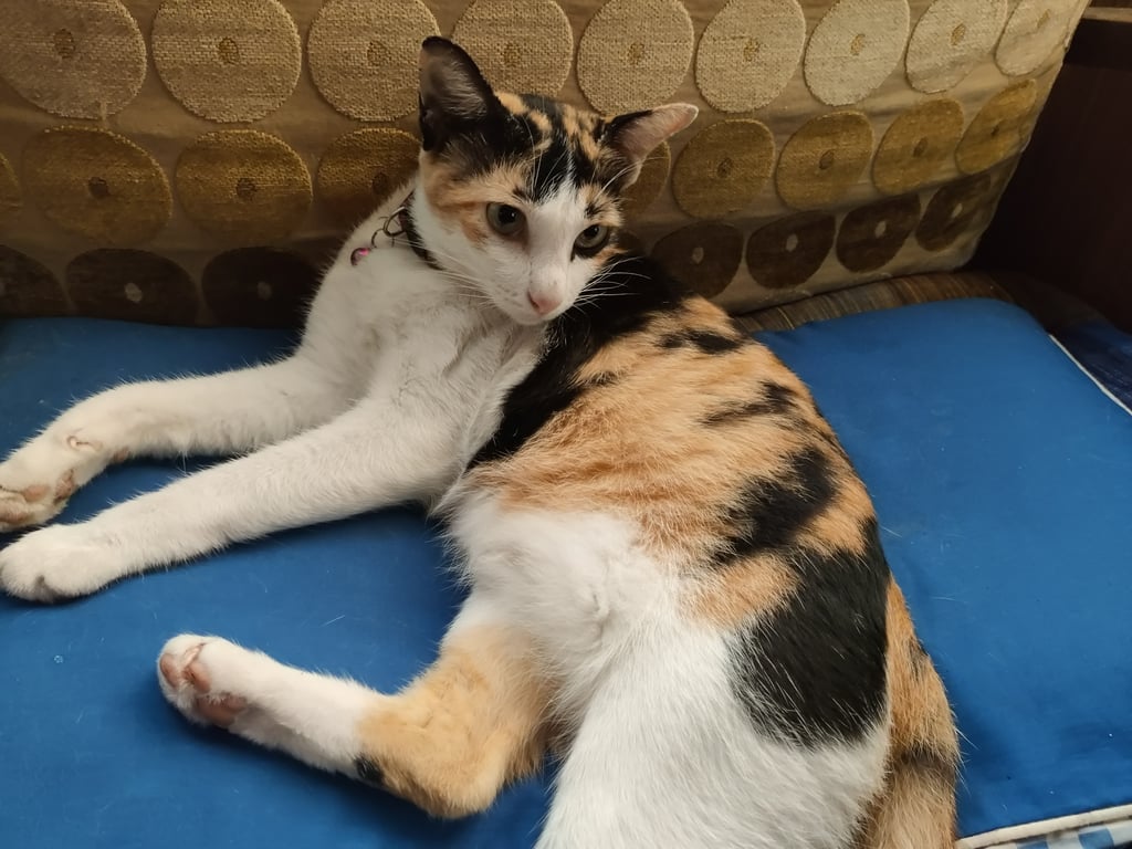 ปลอกคอสีแดง ตาซ้ายมีลายอายไลน์เนอร์สีดำ