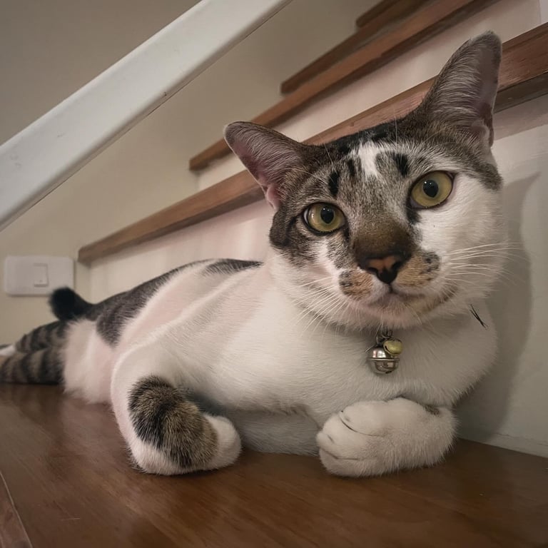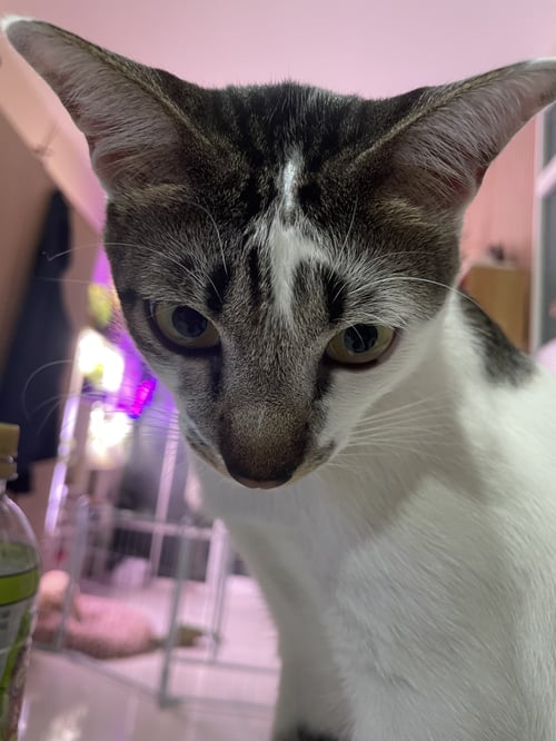 รอยตำหนิ: ขาว ลายสลิด จมูกเปนชมพูดำ เหมือนลายผีเสื้อ ปลอกคอแถบสีเงินดำ กระดิ่งสีเงินกับเหลืองน้องขี้กลัวมาก กลัวคนแปลกหน้า วิ่งเร็วมากด้วยค่ะ
