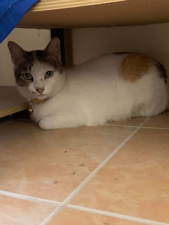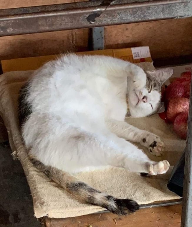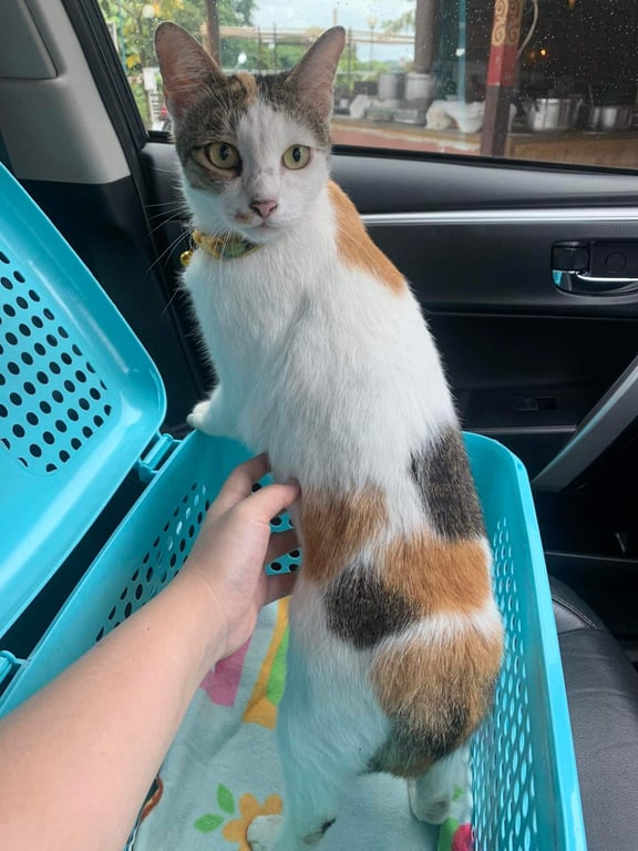 รอยตำหนิ: น้ำหนักประมาณ5โล ที่ปากมีสี1ข้าง ตรงท้องเป็นก้อนๆ1ตุ่มน้องแมวสามสี อ้วน ตรงท้องมีตุ่มๆ1ตุ่มฝั่งซ้าย