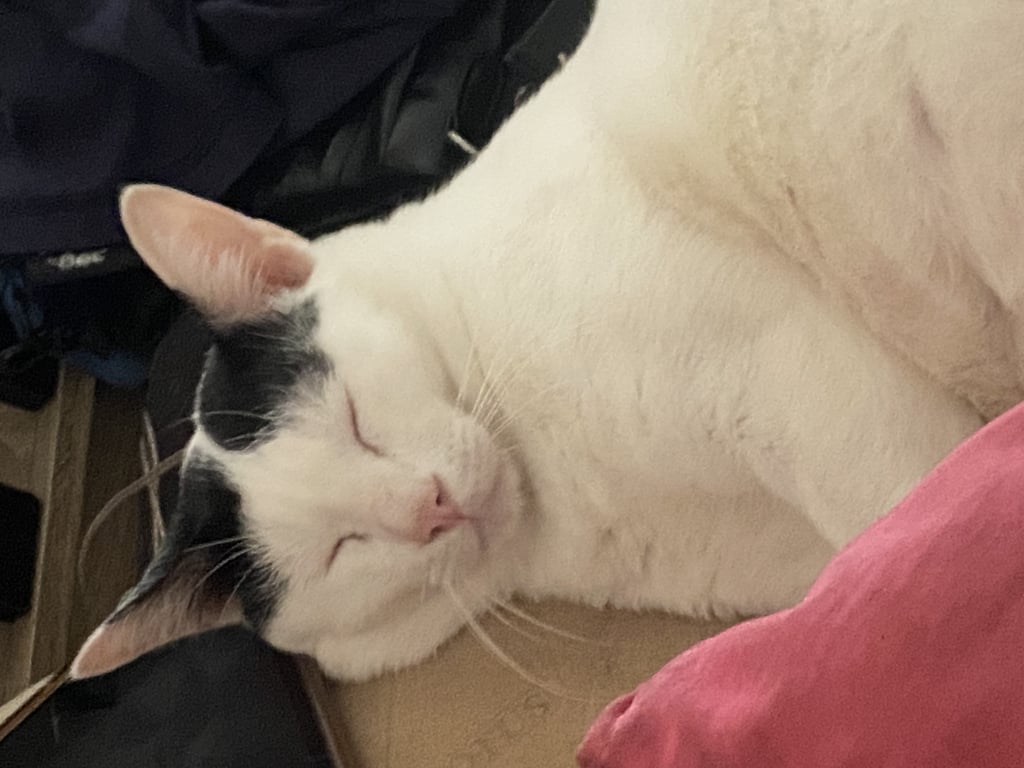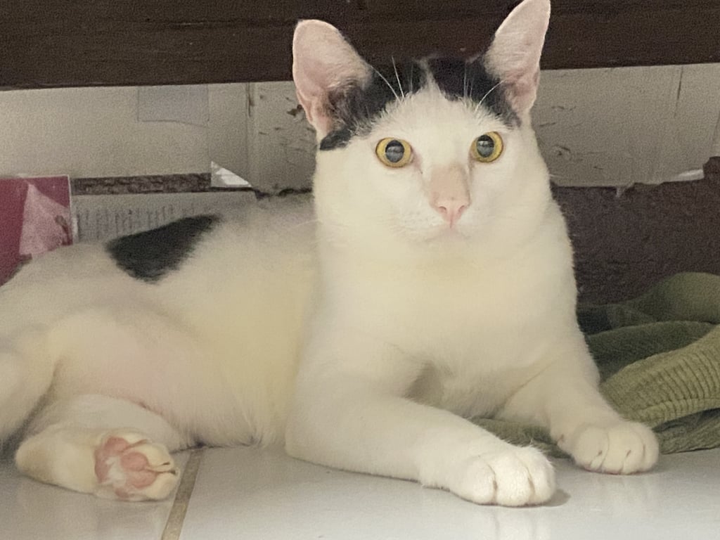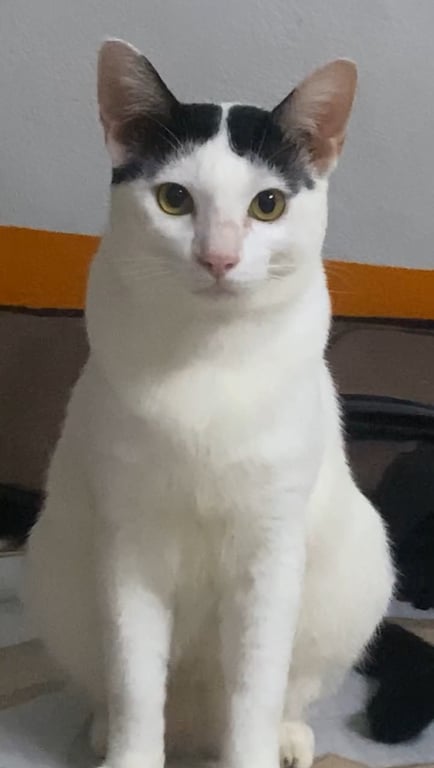รอยตำหนิ: หัวมีแผลนิดนึง หางหักปลายน้องสีขาวลายดำมีแต้น้องมแสกกลางที่หัวน้องเป็นตัวผู้แต่มีพุงย้อยๆคล้ายแมวตัวเมีย มีแผลทีหัว ชอบอยู่กับคนขี้อ้อน ชอบนอนแขนมาก