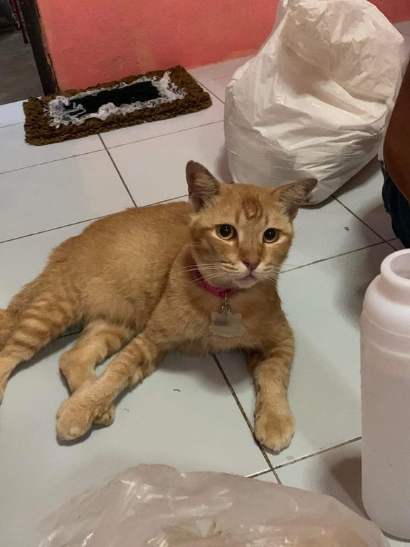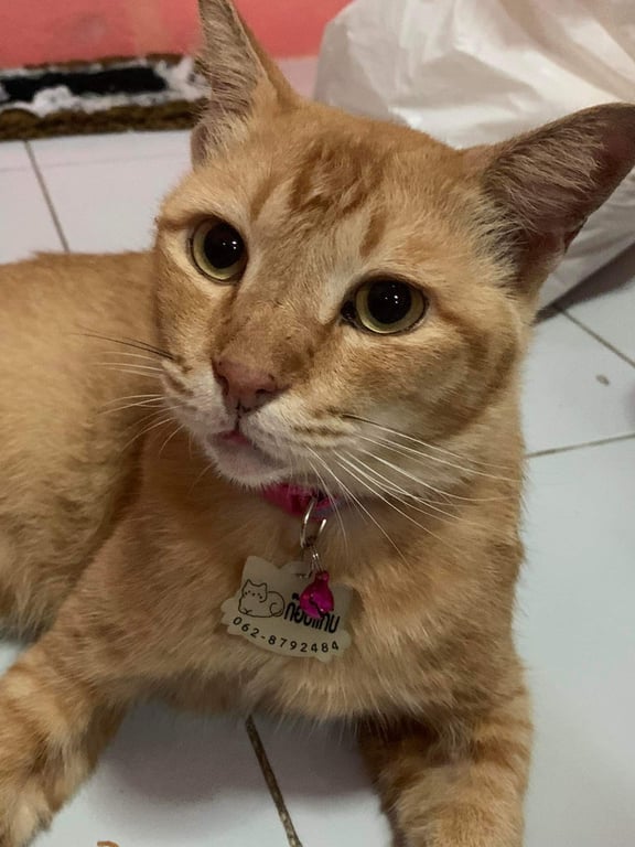 รอยตำหนิ: สวมปลอกคอสีชมพูมีป้ายชื่อ "ก๊อบแก๊บ" ระบุเบอร์โทรเจ้าของ 062-8792484 นำ้หนักประมาณ 6 กิโลกรัมน้องตกใจเสียงดังง่าย ไม่ค่อยให้คนแปลกหน้าจับตัว ขนยาวกว่าแมวไทยทั่วไปนิดหน่อย ตัวใหญ่