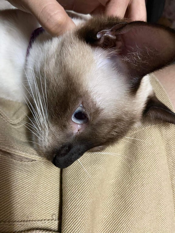 รอยตำหนิ: หางกุด เดินขาโก่งน้องชอบร้องว่า "หง่าว" ไม่ค่อยร้องเหมียว ตาสีฟ้าอ่อน