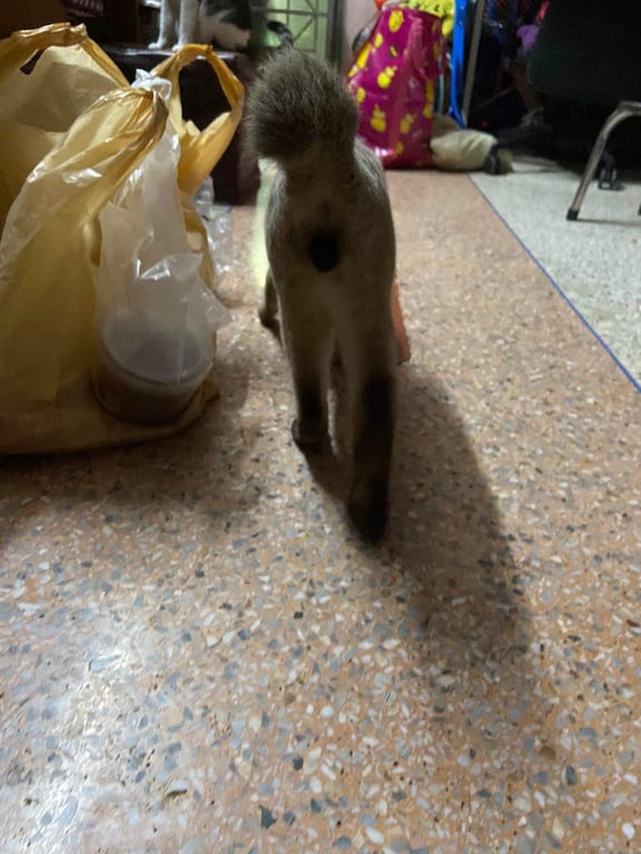สี: ตัวเทาๆน้ำตาลนิดๆ หน้าดำ เท้า4ข้างดำ ไข่ดำ หูดำ