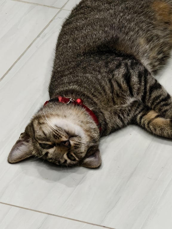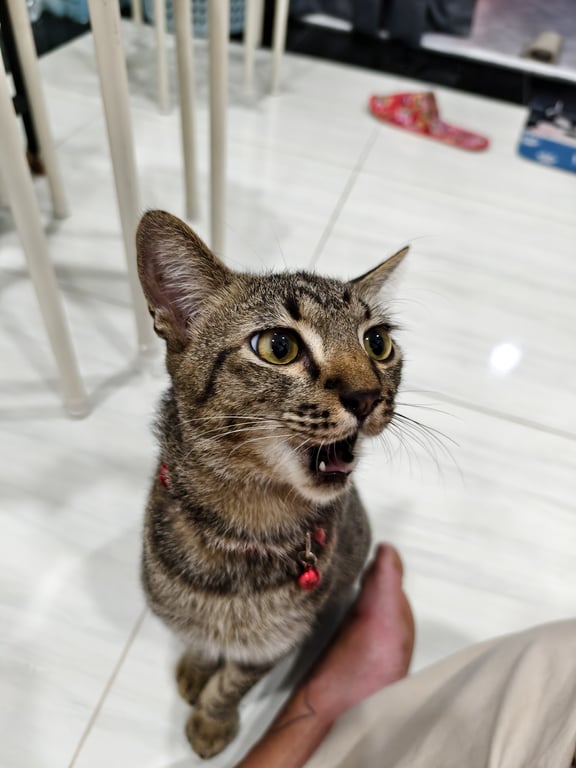 รอยตำหนิ: ปลายหางหักกลัวคนแปลกหน้า มีปอกคอสีแดง