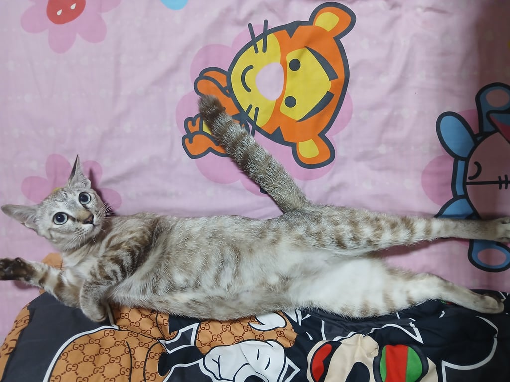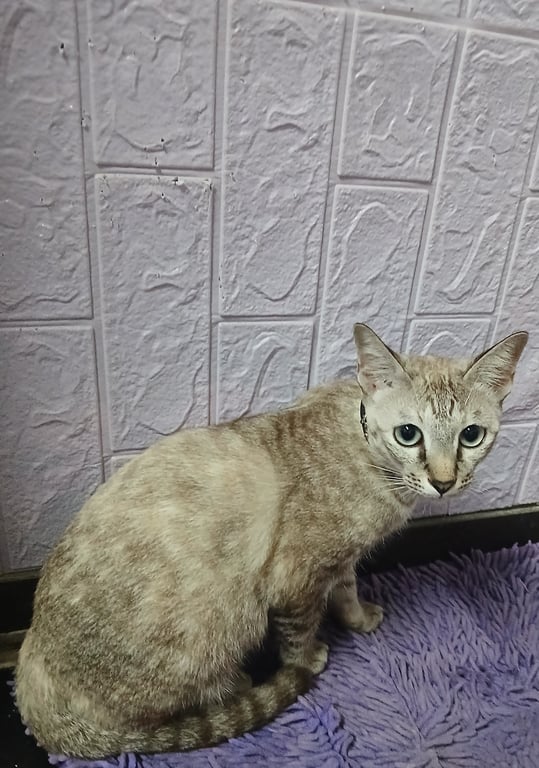 รอยตำหนิ: หางงอเล็กน้อย กลางหลังสีขาวๆนวลๆชอบแอบ ชอบวิ่งหนีคนถ้าจับได้แล้วคืออุ้มได้