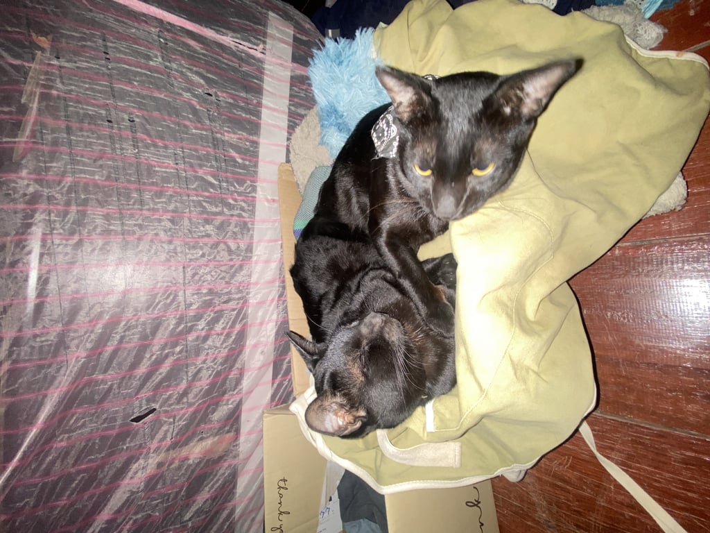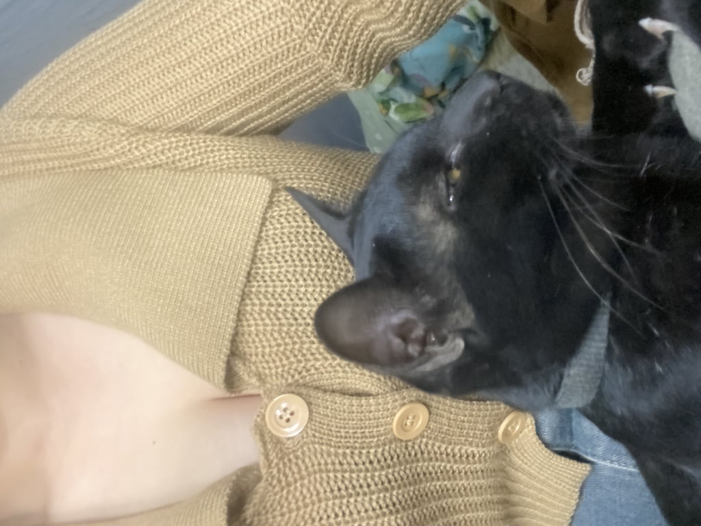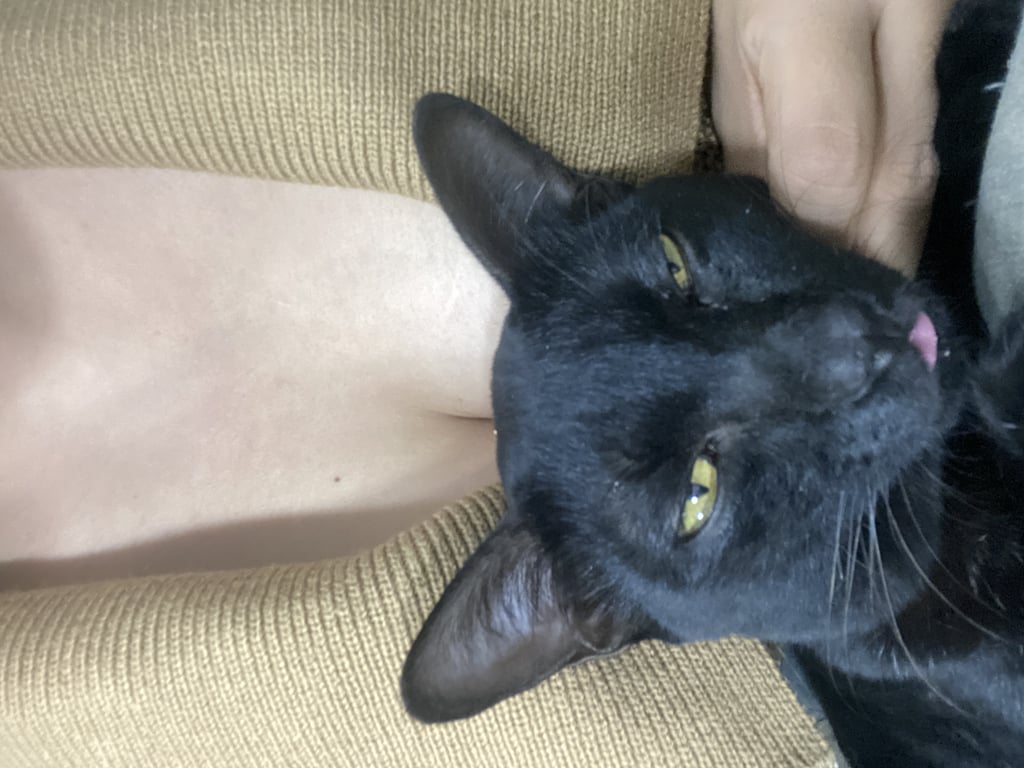 รอยตำหนิ: มีพุงห้อยลงมาเกิดจากรอยแผลสุนัขกัดน้องนิสัยดี ขี้อ้อน เป็นที่รักของแม่และน้องๆแมว เป็นแมวที่อบอุ่น