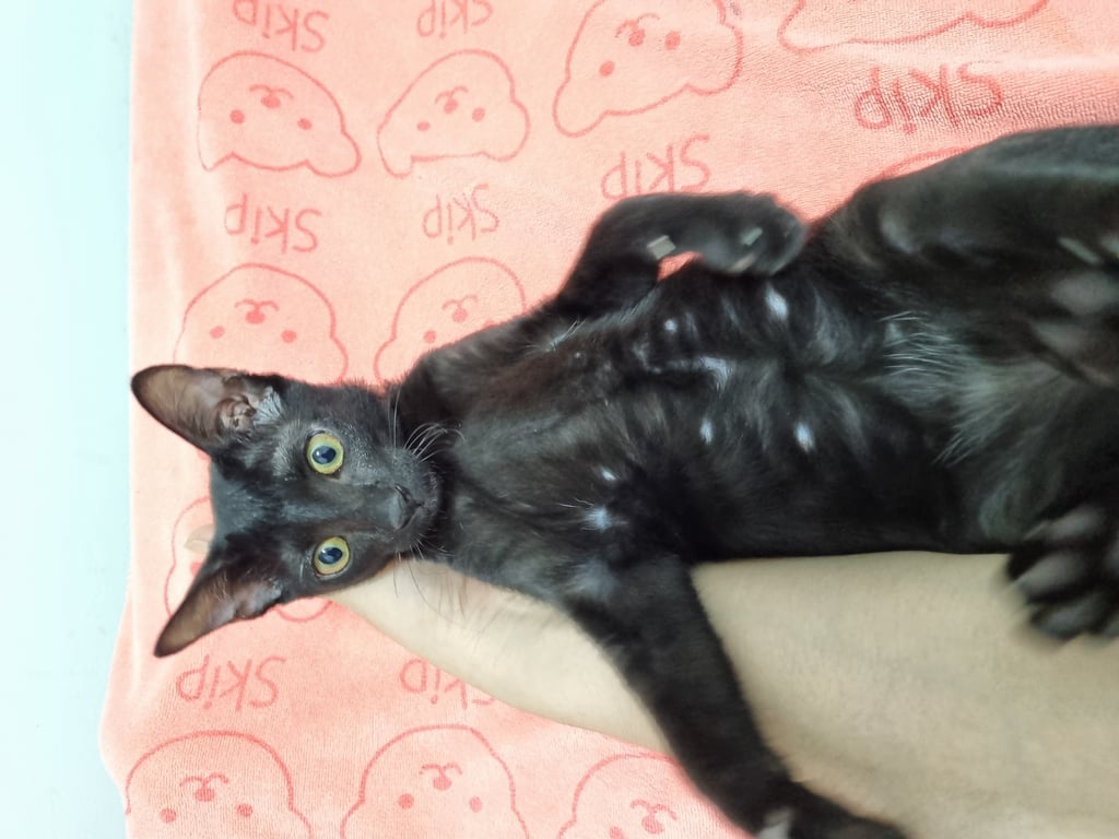 รอยตำหนิ: มีหนวดสีชาว2เส้น มีจุดสีขาวใต้ท้อง1จุดน้องใส่ปอกคอสีชมพู