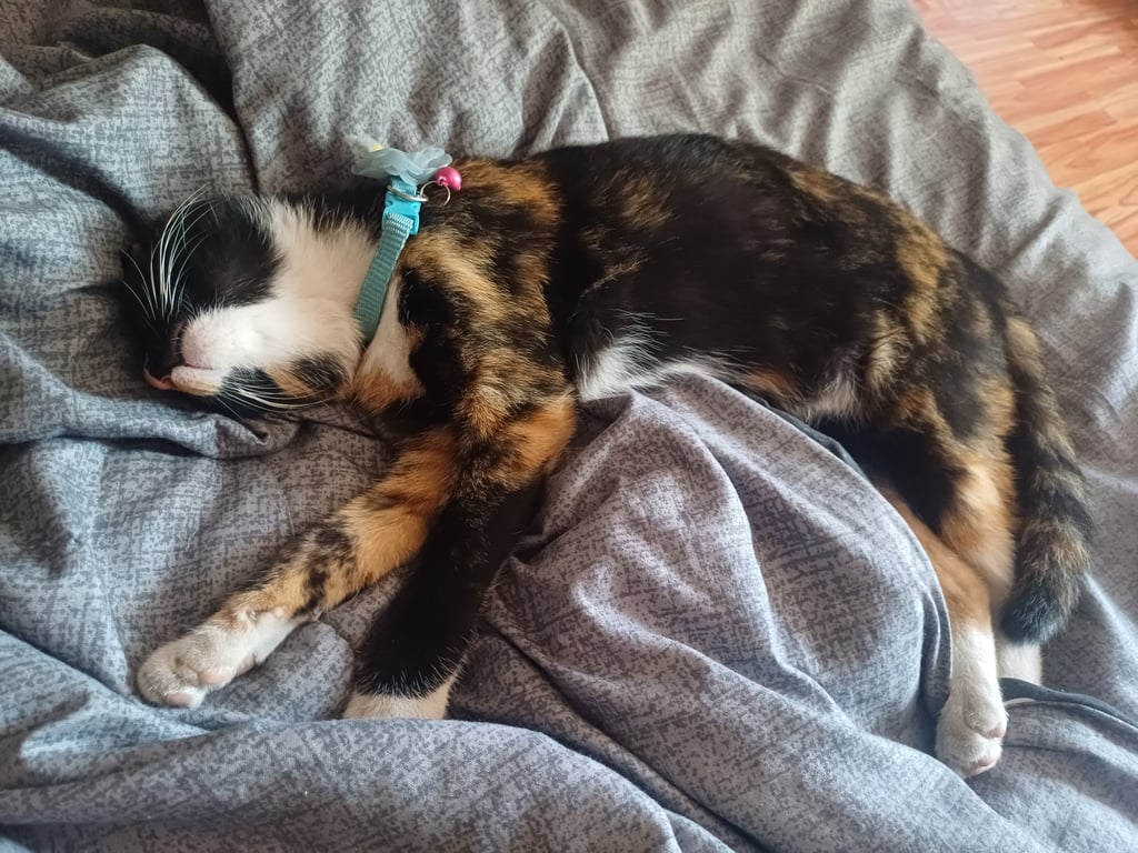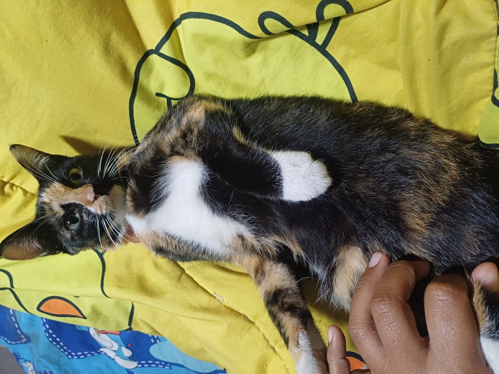 รอยตำหนิ: ใส่ถุงเท้า 4 ข้าง จมูกสีส้มเพศเมีย 3 สี ใส่ถุงเท้า 4 ข้าง ปลอกคอสีฟ้ามีโบว์ เรียกแกงส้มจะวิ่งมาหา ขนกลางท้องสีขาว