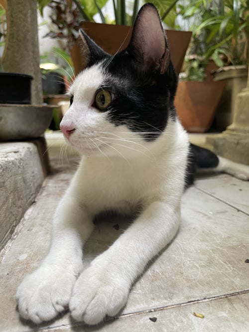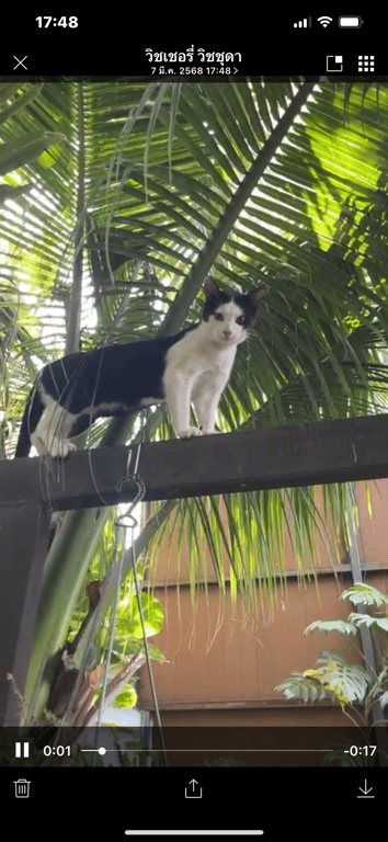 รอยตำหนิ: ตัวดำ หน้าขาวผมแสกกลาง ท้องขาวขี้กลัว