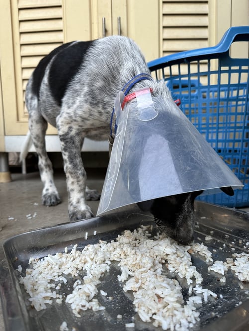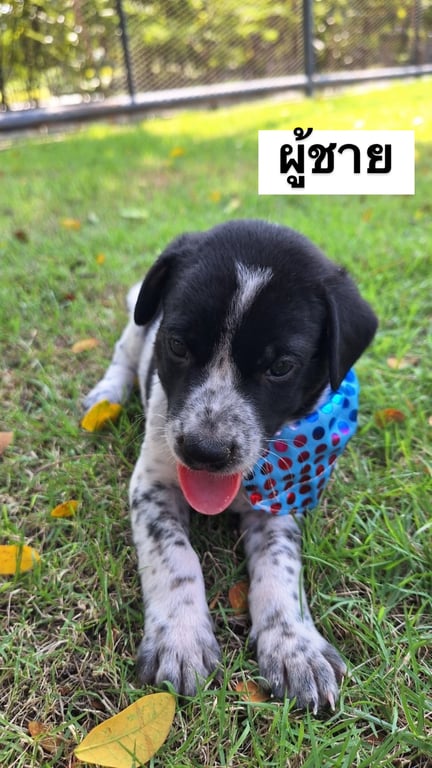รอยตำหนิ: รอยขลิบหูข้างซ้ายใส่ปลอกคอสีน้ำเงิน ลักษณะตาเยิ้ม ขี้กลัว