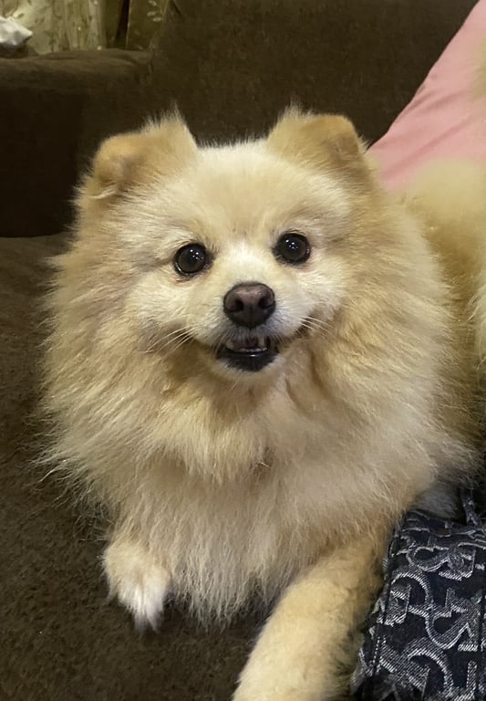 รอยตำหนิ: มีปลอกคอกระดิ่งสีชมพูพาน้องไปเที่ยว ไปเดินเล่นพอสมควร น้องรู้จักบ้าน เป็นหมาที่น่ารัก เรียบร้อย เข้ากับคนง่ายไม่กลัวคน ยิ้มหวาน ชอบให้เกา