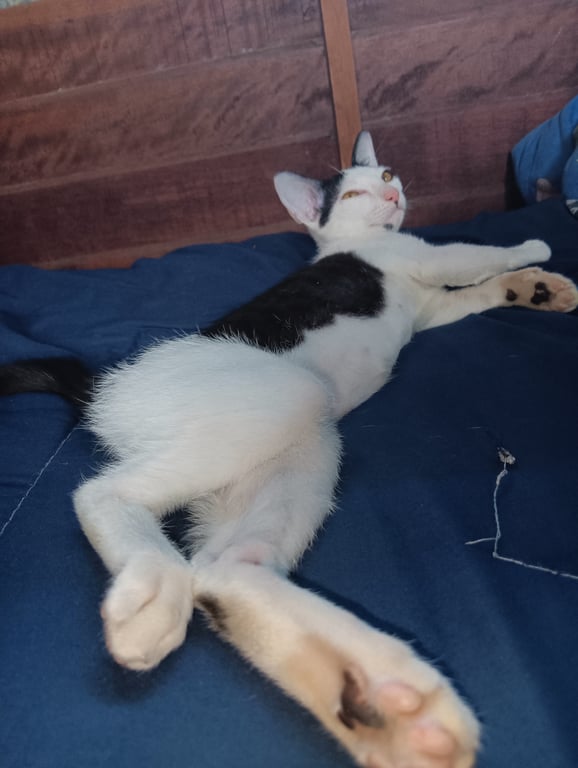 รอยตำหนิ: ขายาว หางยาวดำหมด ช่วงเท้าหลังจะมีสีดำๆเหมือนปาน มีจุดดำๆตรงเเถวๆคางเหมือนไฝเเต่ขี้กลัวขี้ระเเวง ตกใจเสียงดังกระทันหัน ขู่ตอนเจอคนเเปลกหน้าเเต่ไม่ทำอะไร ล่อด้วยขนมก็จะค่อยๆมาหา ชอบร้องเรียกเสียงดัง ไม่ชอบถูกจับอยู่ในกรง/กล่อง/ที่เเคบๆ ไม่มีปลอกคอ