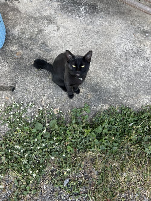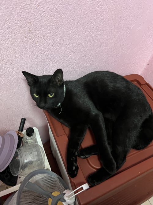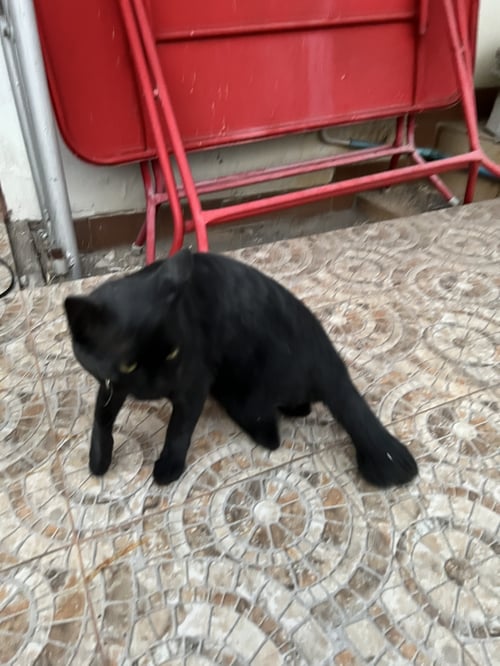 รอยตำหนิ: ปลายหางงอเป็นแมวเชื่อง สีดำทั้งตัว ตาสีเขียว เรียกมีตังค์จะมาหา ปลอกคอสีเขียวสะท้อนแสง มีเบอร์ติดต่ออยู่ เป็นปลอกคอนิรภัยอาจจะหลุดออกได้