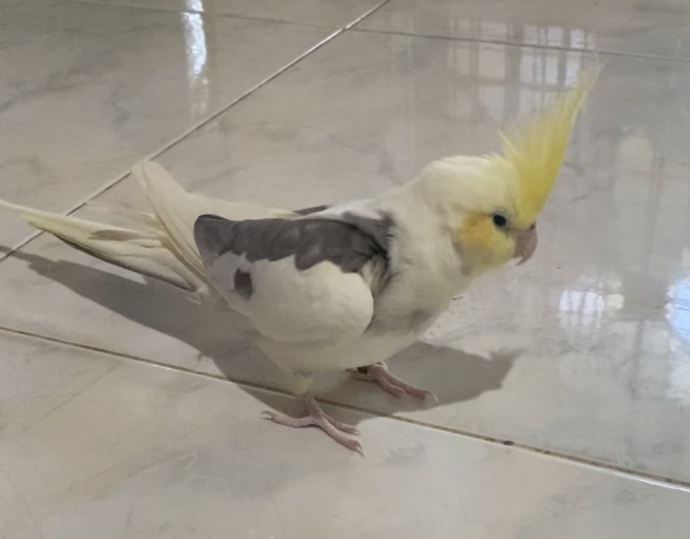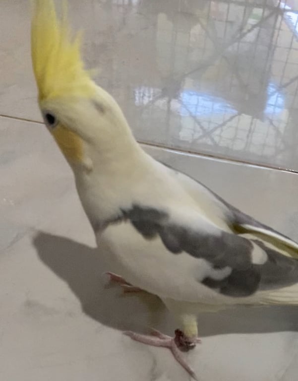 รอยตำหนิ: มีจุดสีเทาที่ปีกด้านขวา แก้มสีส้มอ่อน ตาสีดำ มีห่วงขาสีน้ำตาลเชื่อง ติดคน บินเก่งแต่ลงไม่เป็น