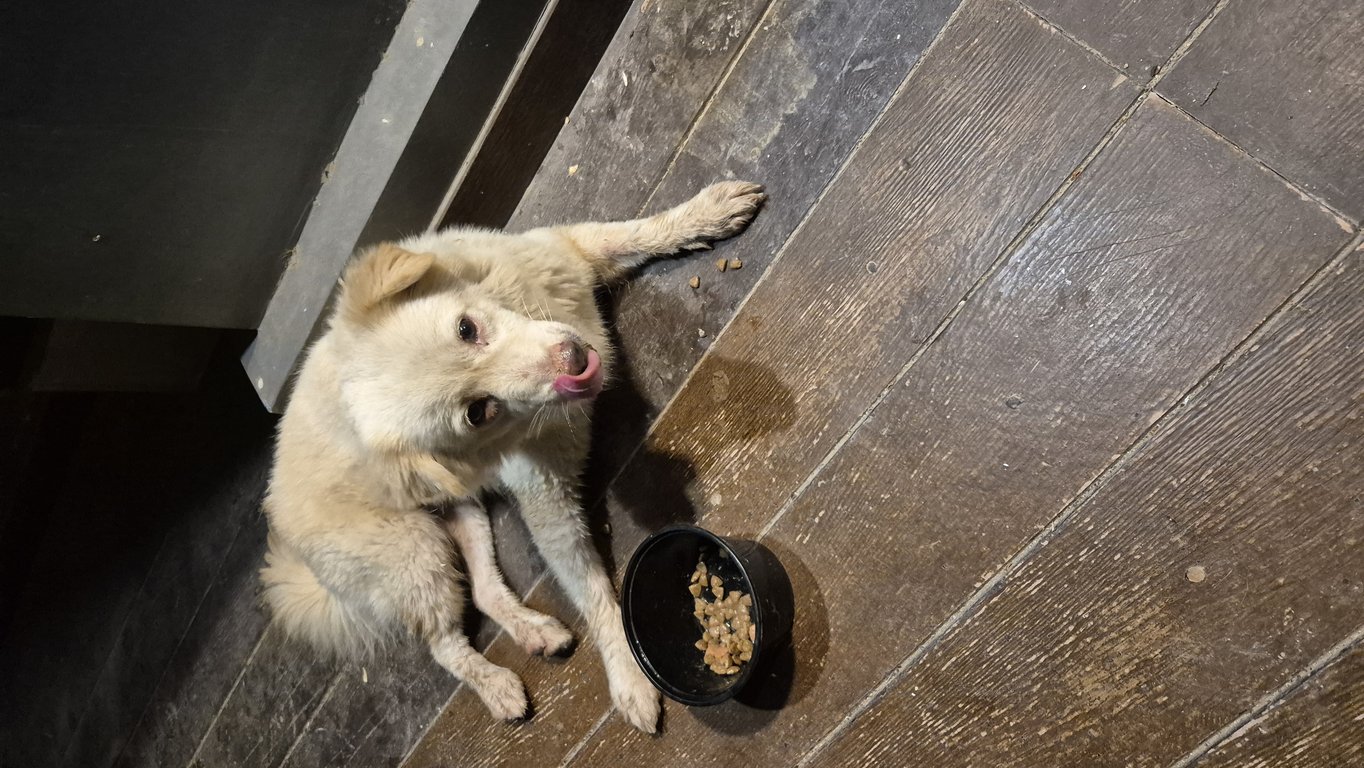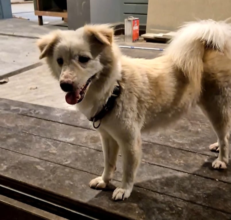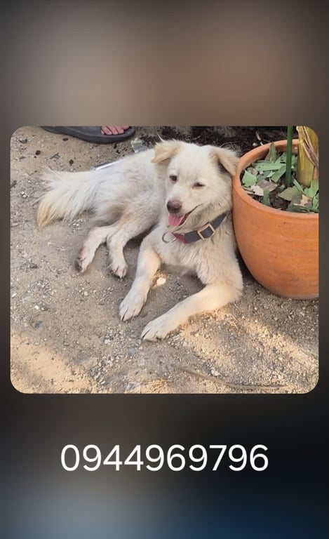 รอยตำหนิ: มีปลอกคอสีเทา ขนสีครีมขี้กลัว และเชื่อง