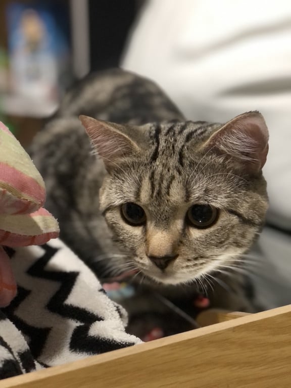 รอยตำหนิ: กระดิ่งสีน้ำเงินรูปกบ หางยาว อุ้งเท้าสีดำน้องไม่ดุ