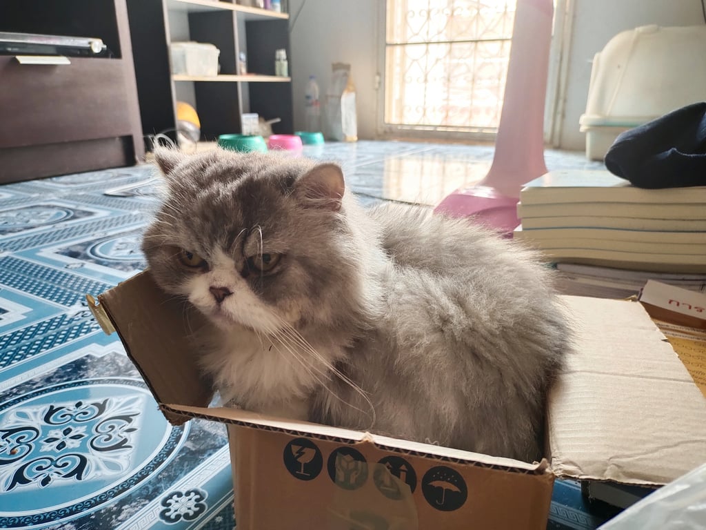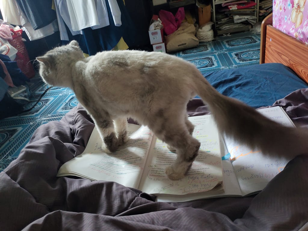รอยตำหนิ: ตัวผอม ตัดขนเกรียน ตาสีเหลืองเป็นแมวเงียบๆ ไม่ค่อยส่งเสียง กลัวคนแปลกหน้า กลัวหมา ร่างกายไม่ค่อยแข็งแรง เป็นโรคไต กินแต่อาหารเปียก