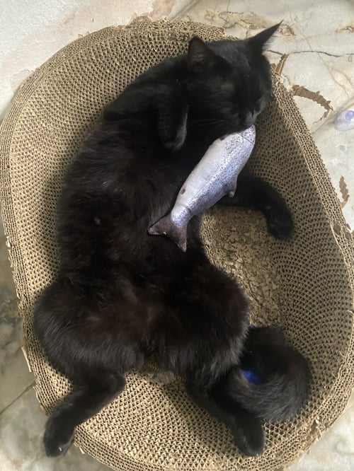รอยตำหนิ: ดำทั้งตัว หางยาว ขนฟูระดับกลางๆ เสียงร้องเล็กๆน่ารัก