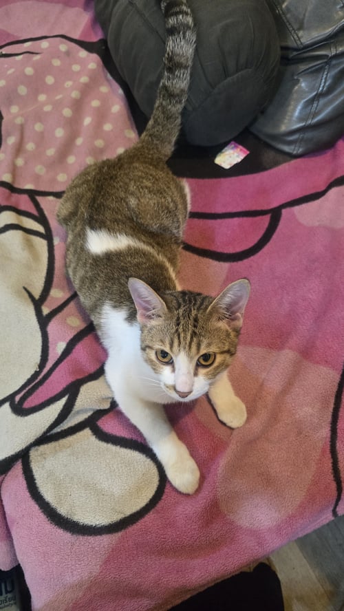 รอยตำหนิ: รอบจมูกมีเส้นดำชัดเจน ลำตัวยาว หางยาง ตัวสีขาว น้ำตาลขี้อ้อน ไม่ดุ เชื่อง ไม่ค่อยร้อง