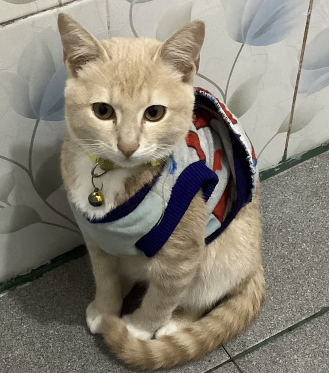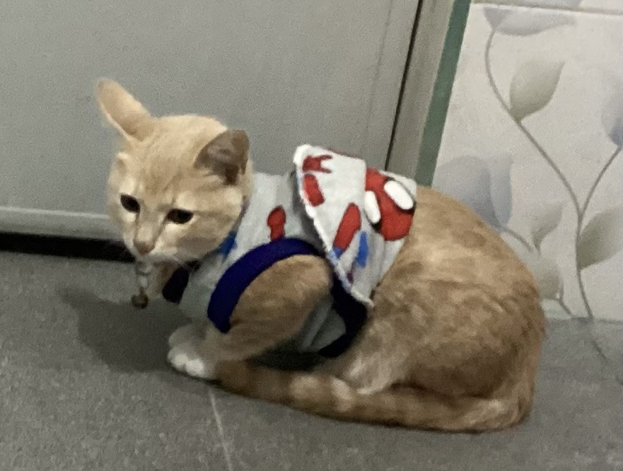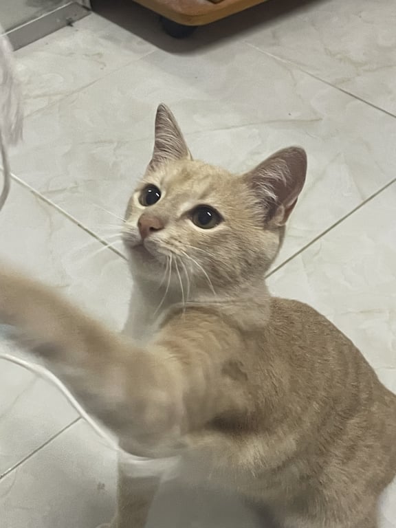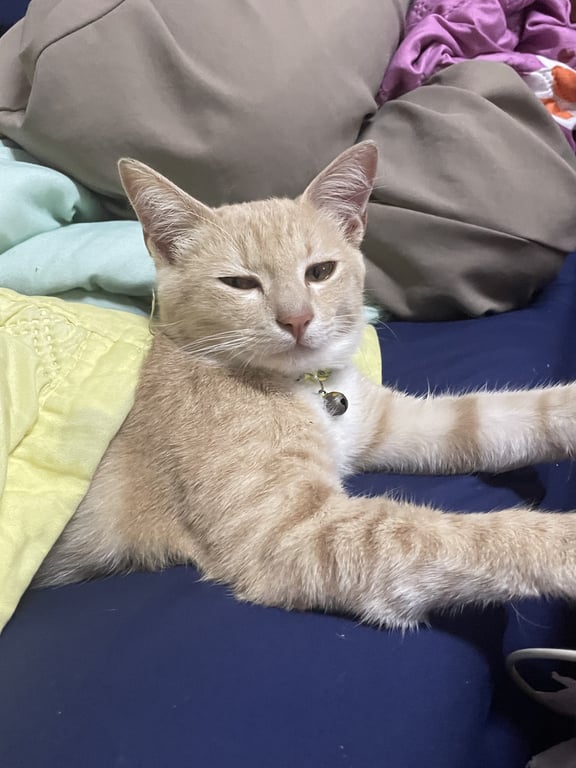 รอยตำหนิ: หางหงิกตรงปลายเล็กน้อย เคยเป็นตรงโคนหาง สีส้มอ่อนๆๆไม่ชอบให้จับท้อง ไม่ขี้อ้อน ขี้รำคาญ ใจดีเวลาง่วง ไม่ดุไม่กัด ชอบคาบแมลง