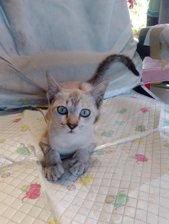 รอยตำหนิ: หางเป็นสีน้ำตาลเข็ม ร้องไม่มีเสียงนิสัยเชื่องๆช้าๆ ชอบอยู่ใกล้เจ้าของ ชอบเดินตาม กินเก่งสามารถกินได้ตลอด