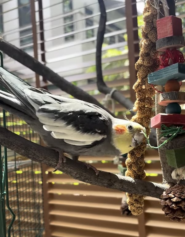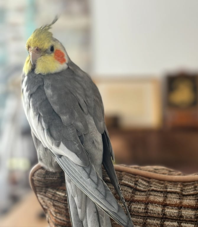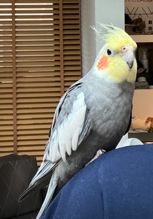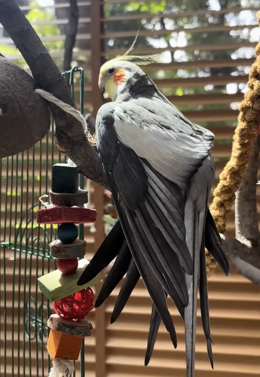 รอยตำหนิ: ปลายปีกสีขาว ปลายปากสีออกดำ แก้มส้ม หน้าเหลือง ตัวสีเทาชอบร้องเพลง พูดแม่ครับ สวีสดีครับ หลงครับ ได้ ติดคน