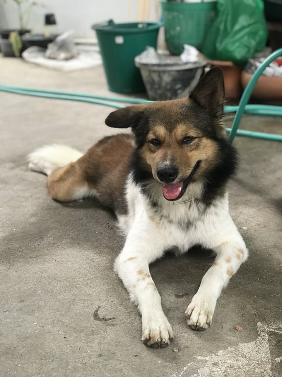 รอยตำหนิ: หูตั้งข้าง พับข้างนึง หางเป็นหวงสีขาวขี้เล่น ชอบกระโดดกอด เลียปาก เลียหน้า