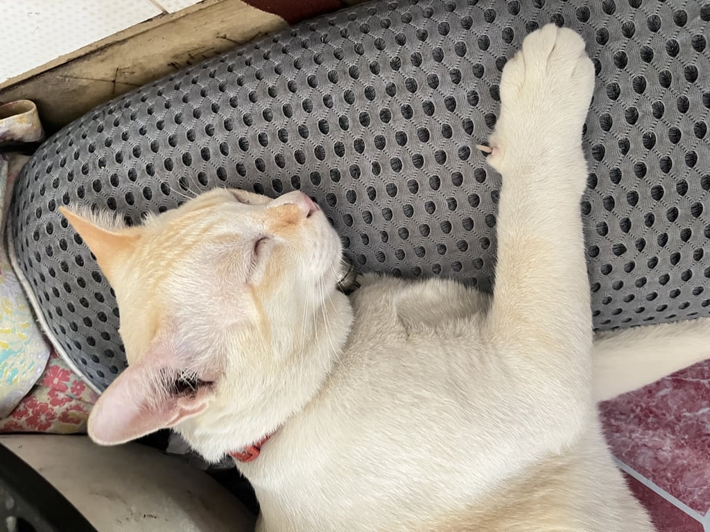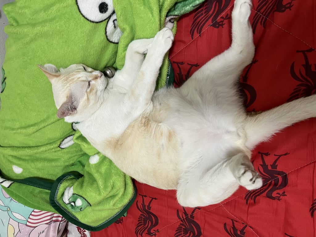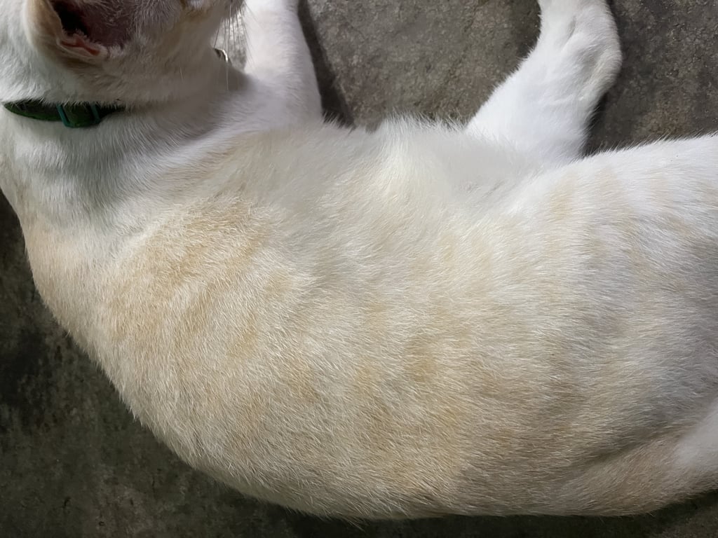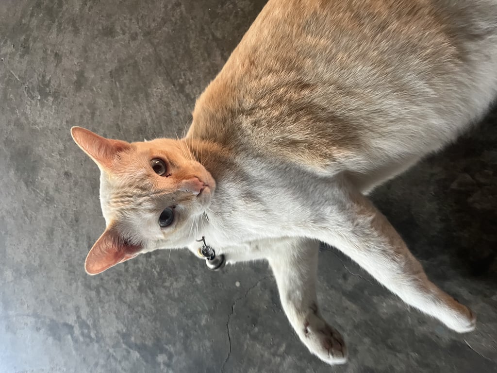 รอยตำหนิ: ปลายหางหักเชื่องมากคนที่ไม่รู้จักมาเล่นน้องก็จะเล่นด้วย ปลอกคอสีเเดง ปลายหางหัก หางเป็นลายเสือ