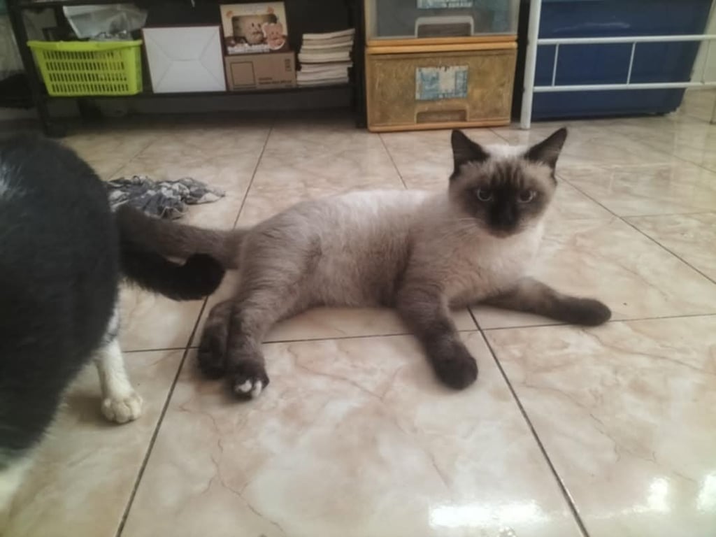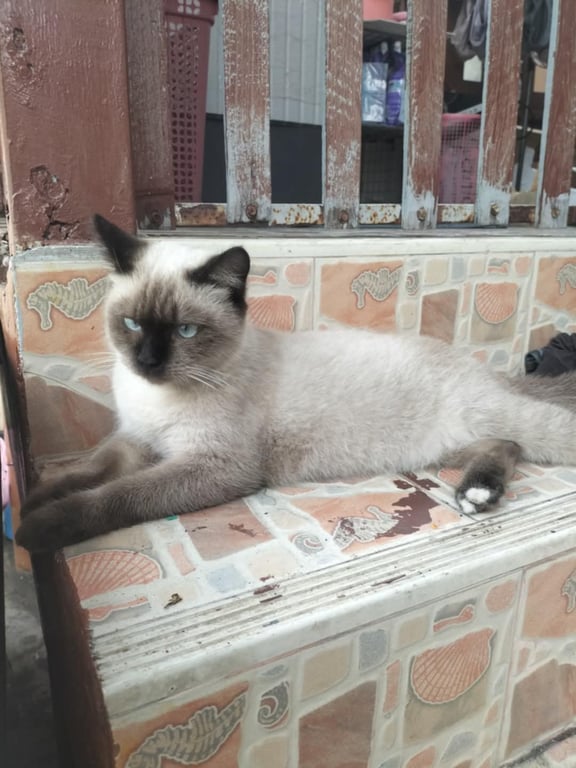 รอยตำหนิ: เท้าสีดำทั้ง 4 เท้า แต่จะมีสีขาวนิดนึงที่เท้าหลังขวาเลี้ยงระบบปิด แต่บ่อยครั้ง น้องจะนั่งเล่นแต่หน้าบรรได ไม่เคยละสายตา (วันหยุดงานจะปล่อยน้องนั่งเล่น) น้องรู้จักบ้านดี และกลับบ้านได้ถ้าอยู่ระแวกนี้ นิสัยน้อง ไม่ให้ใครจับ ขี้ระแวง แต่รู้ชื่อ ต้องใช้ของกินล่อถึงเดินเข้าหา แต่ก้อไม่ให้อุ้มอยู่ดี #ใครอุ้มน้องไปเอามาคืนเถอะค่ะเป็นห่วงมากๆไม่ได้นอนเลยค่ะ น้องหายแถวต.ท้ายบ้าน จ.สมุทรปราการคะ