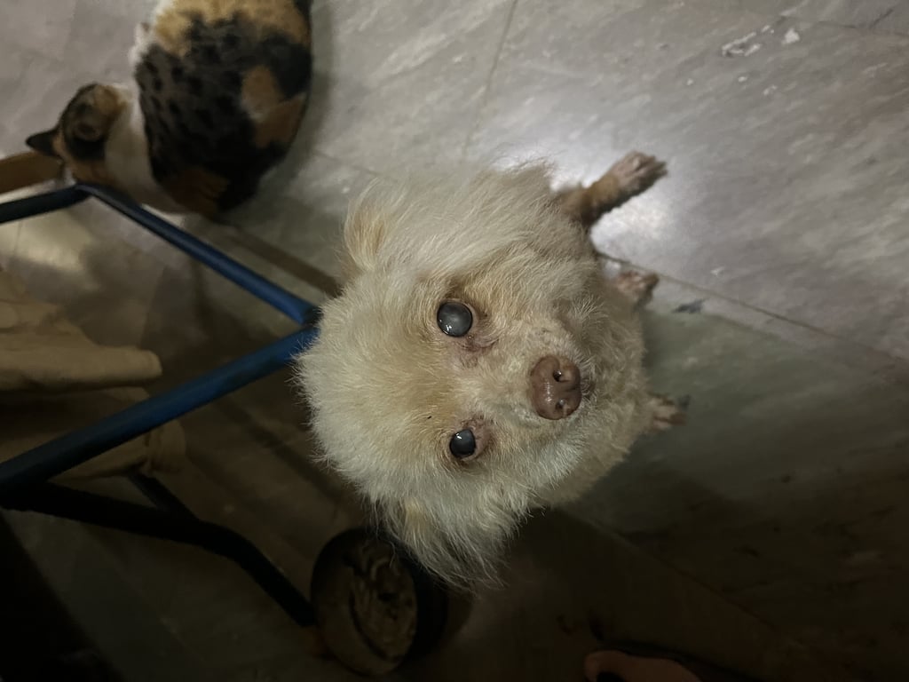 รอยตำหนิ: ตาเป็นต้อ ฟันไม่มี ตัวเล็กไม่ดุ นิสัยดี น่ารัก ขีอ้อน ฉลาด