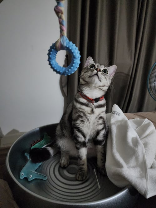 รอยตำหนิ: ปลอกคอสีแดงตื่นคนง่าย ขี้ตกใจ ชอบทำหน้าเบื่อโลก อาจรุนแรง น้องให้มือเป็นเมื่อให้ขนม เวลาลูบหัวและแก้มน้องจะกรืดๆเสียงดังมากกว่าปกติ