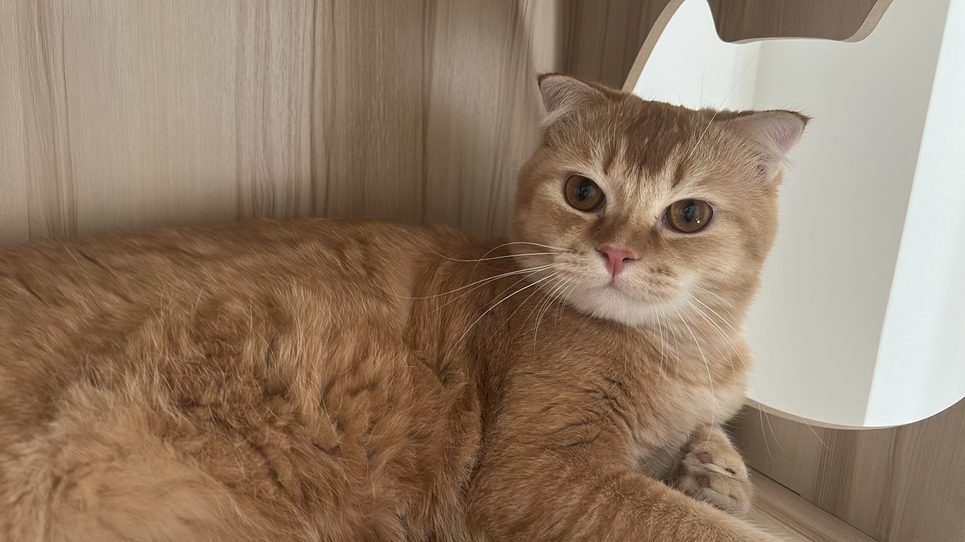 รอยตำหนิ: หูดีด ตากลมน้องเป็นแมวขี้ตกใจ ขี้กลัว ชอบหลบตามที่บังได้