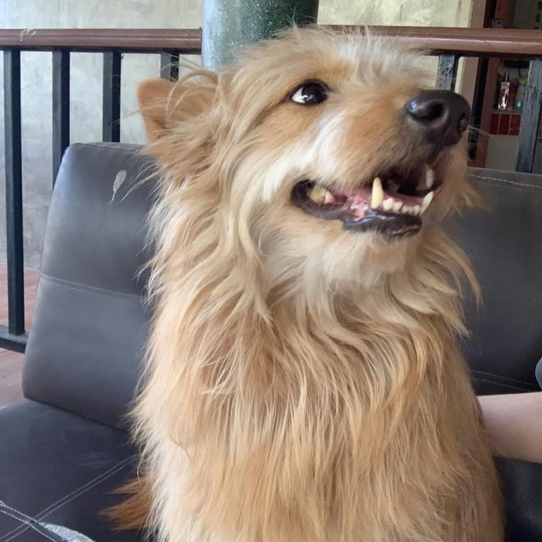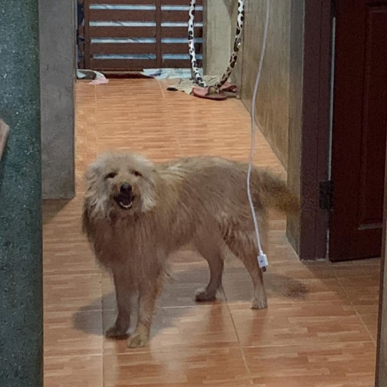 รอยตำหนิ: ขนยาวตัวใหญ่สีน้ำตาล ขนยาว ขี้กลัวมากๆ กลัวเสียงดัง กลัวฝน