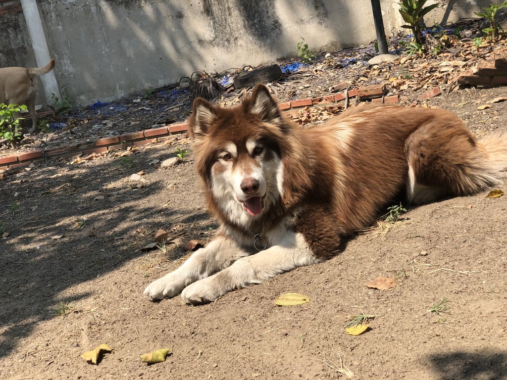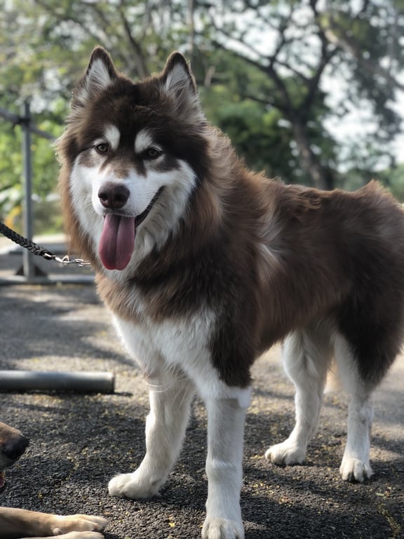 รอยตำหนิ: โกนขนใต้ท้องพันธุ์อลาสกัน มาลามิวท์ ตัวสูงเท่าสะโพก (ศีรษะ) เป็นมิตรกับคนมาก ขี้เล่น กลัวไฟจากพวกโคมไฟ เสาไฟ ตกใส่ ชอบไล่สัตว์เล็ก