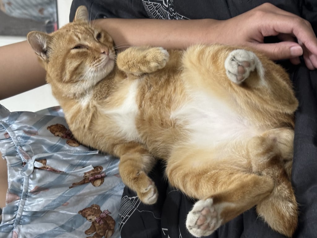 รอยตำหนิ: ขาหลังมีแผลเป็นรู , ไม่ได้ใส่ปลอกคอ , หางขอด ,ตรงปากกับท้องมีสีขาวนิสัยมึนๆ